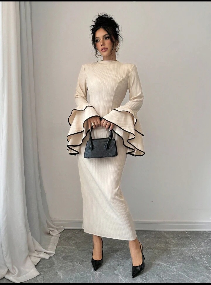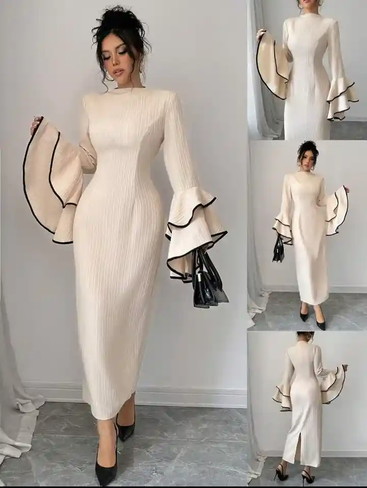 تصميم الكم بالكورنيش بيضيف لمسة أنثوية جذابة تبرز جمالك سواء للخروجات النهارية أو السهرات الخاصة.