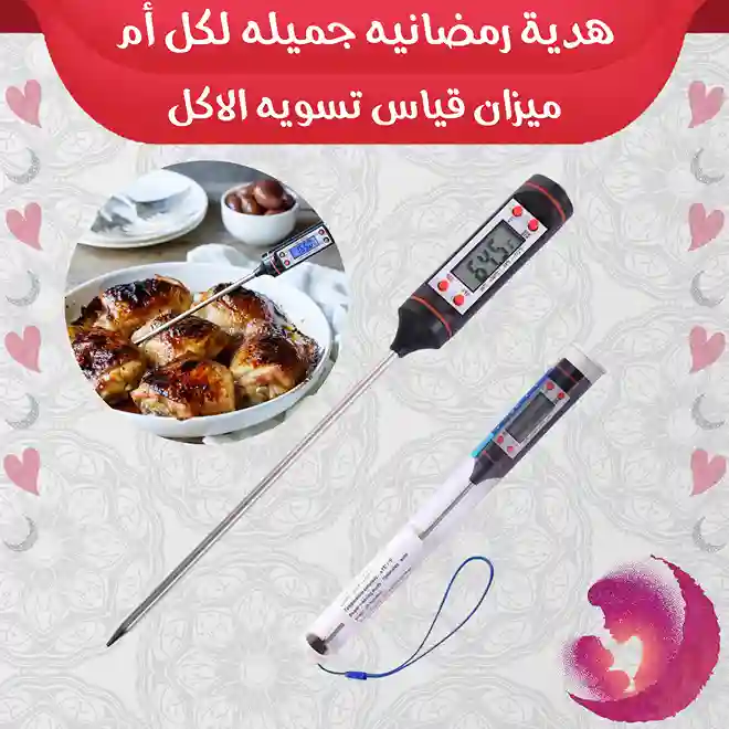 أجمل هدية رمضانية ممكن تهادي بيها ست الحبايب في #عيد_الأم 🥰 ميزان قياس تسويه الاكل و درجة الاستواء للحوم و السوائل والمشروبات الساخنة مفيد جدا تستخدم لقياس درجة الحرارة الداخلية من اللحوم ، مثل الخبز والشرائح أو غيرها من الأطعمة المطبوخة يسهل العرض الرقمي القراءة المناسبةو الحصول على درجة الحرارة للحوم المطبوخة مسبار طويل حاد وحساس من الفولاذ المقاوم للصدأ ، ثبات عالي ، دقة عالية ،.. • عن المنتج : • مادة عالية الجودة • سهل الاستخدام • سهل التخزين • سهل التنظيف • نطاق درجة الحرارة: -50 درجة إلى 300 درجة • اللون: أسود • المادة: ستانلس ستيل + بلاستيك ايه بي اس • البطارية متضمنة •