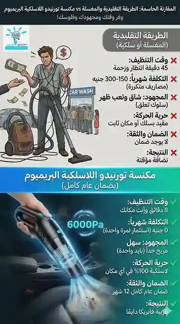 تعتبر المكنسة اللاسلكية المطورة قفزة تقنية في معدات العناية بالسيارات؛ حيث تجمع بين خفة الوزن الفائقة وقوة الشفط التوربينية التي تصل إلى 6000Pa. صُممت خصيصاً لتلبية احتياجات ملاك السيارات الذين يقدرون الوقت ويرغبون في الحفاظ على "حالة الفابريكا" لمقصورة القيادة دون عناء الأسلاك المتشابكة أو تكاليف المغاسل الباهظة.